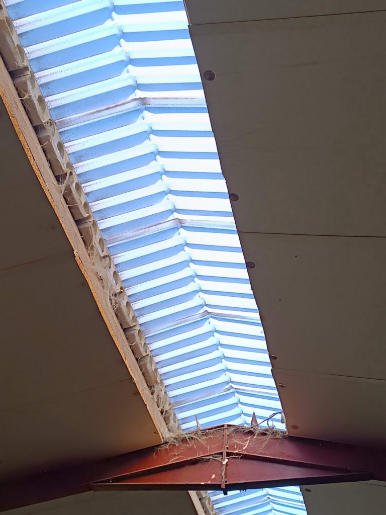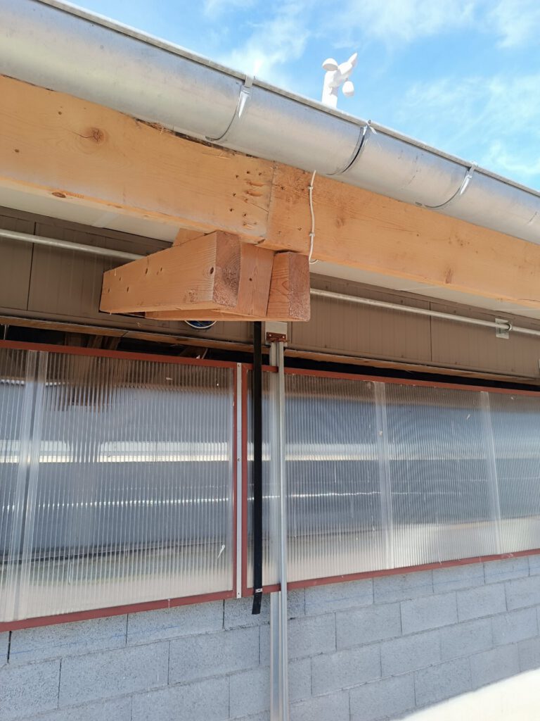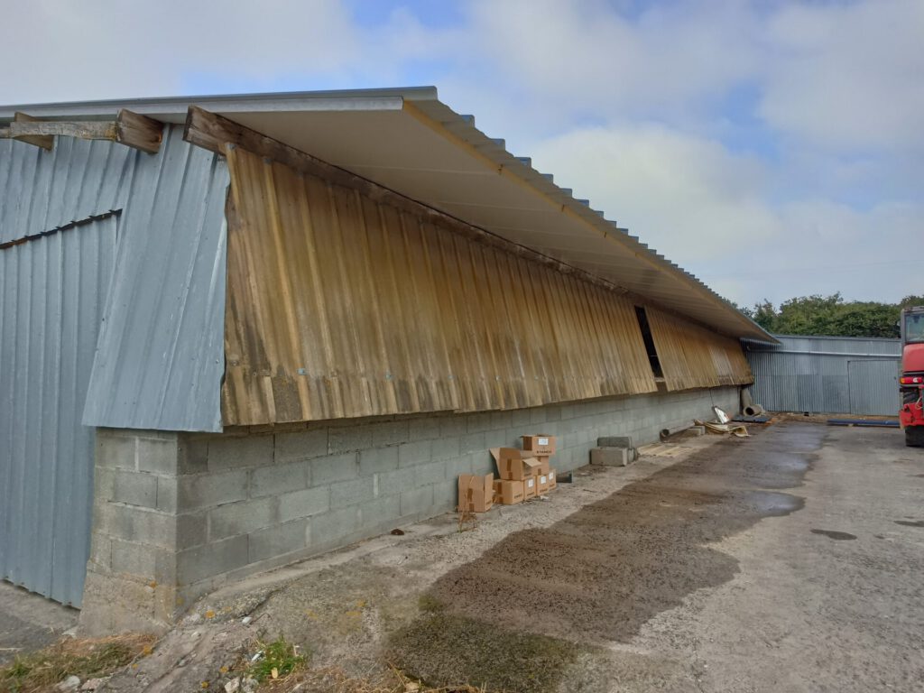 Nous avons donc entrepris une rénovation complète incluant la pose de panneaux sandwich isolants, la création d’un faîtage ventilé et lumineux, l’installation de volets ouvrants et la construction de casquettes pour limiter les remontées d’humidité.
