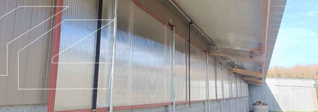 Dans le nord des Deux-Sèvres, le client souhaitait améliorer significativement le confort de sa chèvrerie, tant au niveau thermique qu’au niveau de la ventilation. L’objectif était d’assurer une meilleure gestion de l’humidité, d’augmenter la luminosité naturelle et de faciliter la circulation de l’air.